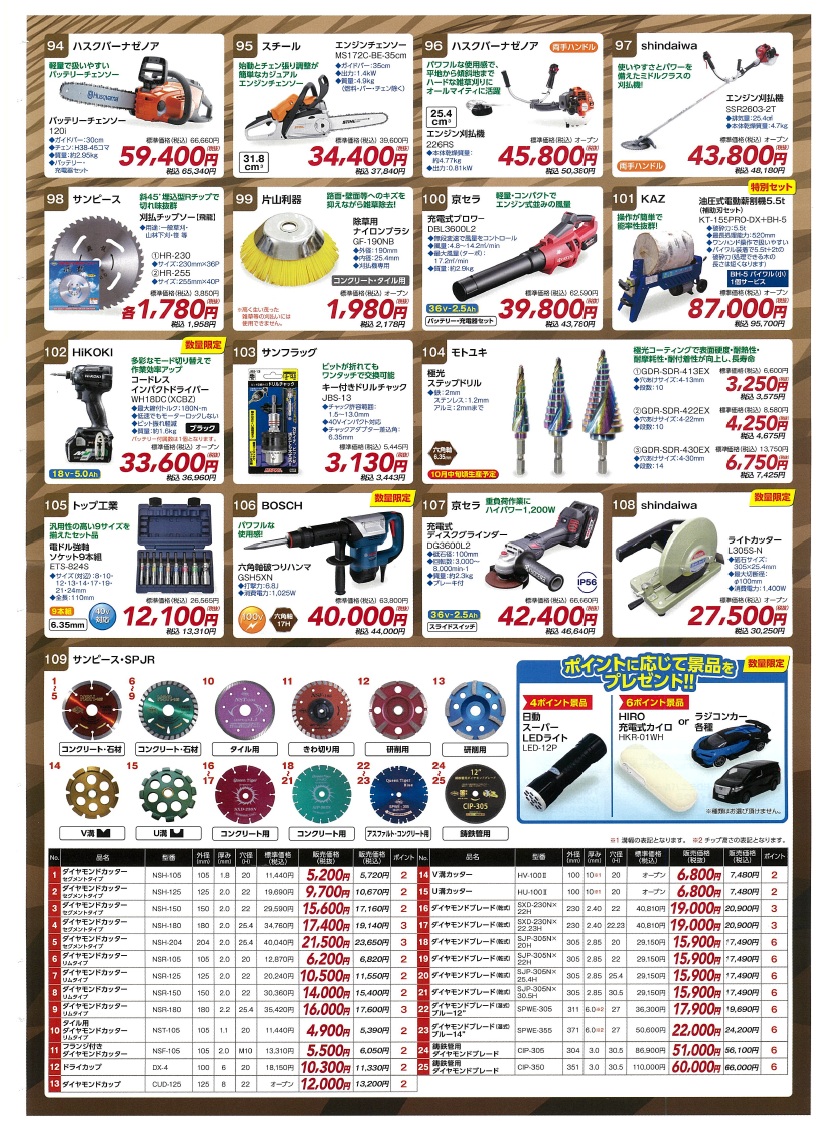 近年では、得意先のニーズの変化に対応し、工具や建築金物の小売販売にも取り組んでいます。