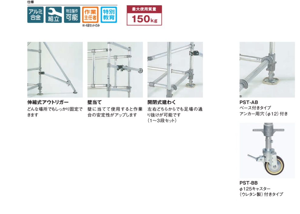 商品名: ピカ パイプ製足場[Ф130mmキャスター付き]PST-1BB・PST-2BB・PST-3BB・PST-4BB