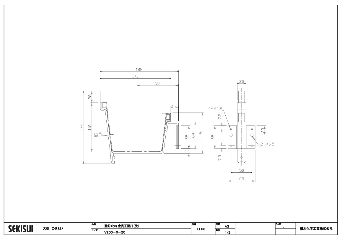 商品名: エスロン大型とい 亜鉛メッキ 正面打(受) V200*0寸勾配*20出 LF03G