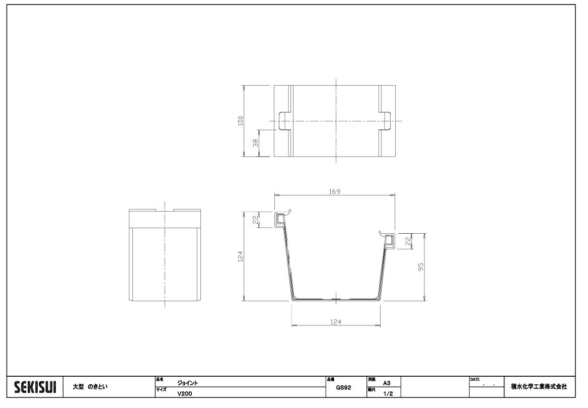<大型といV-200の継ぎ手です【エスロン大型とい グレー のきジョイント V200 GS92G 】>