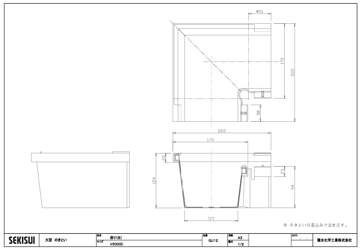 商品名: エスロン大型とい グレー のき曲がり(出隅) (入隅) V200 GU12G・GS95