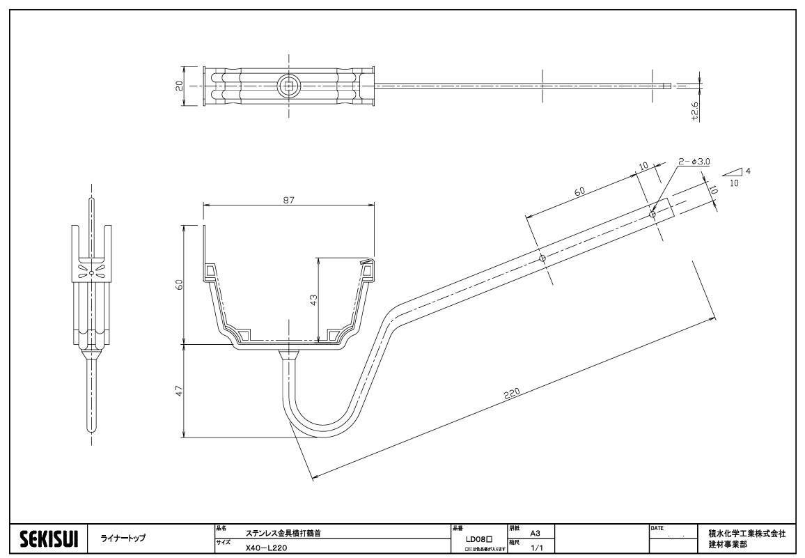<ライナートップ玄関用X40の横打ち保持金具です【エスロンライナートップ 新茶 ステンレス横打つる首 X40*220L LD08S】>