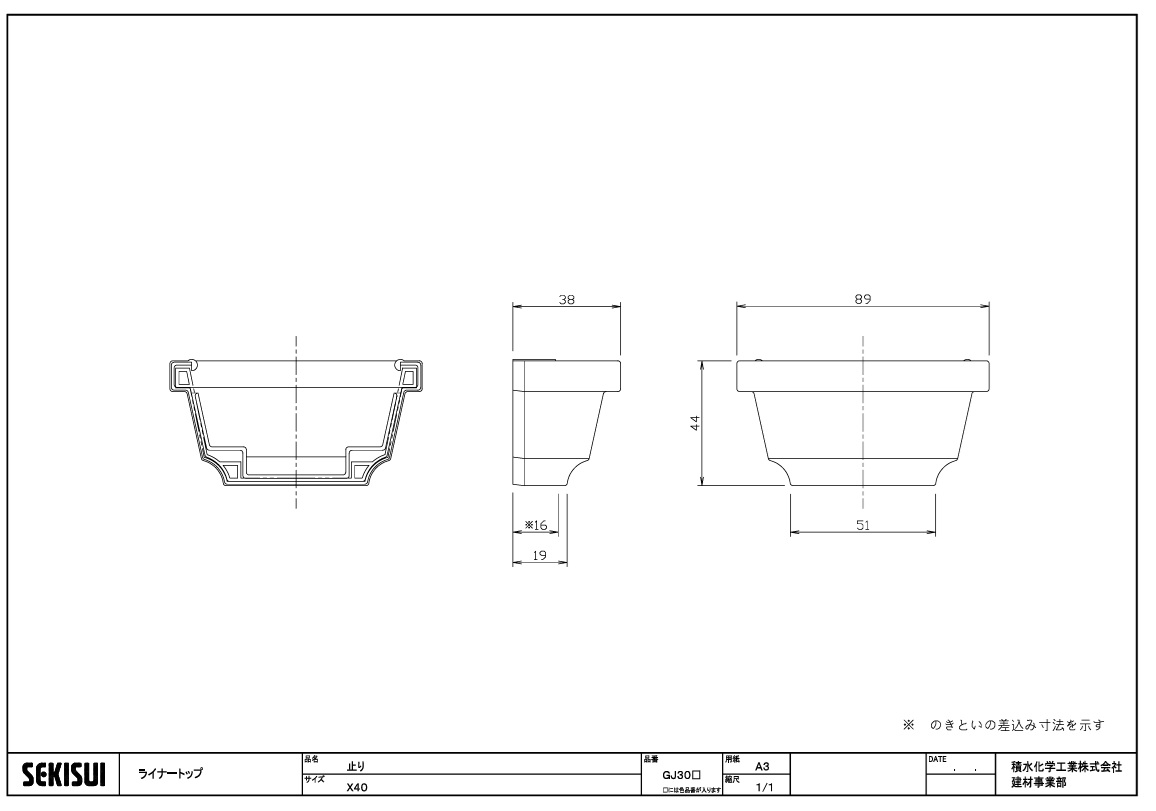 分類: エスロン雨とい 玄関用ライナートップX40