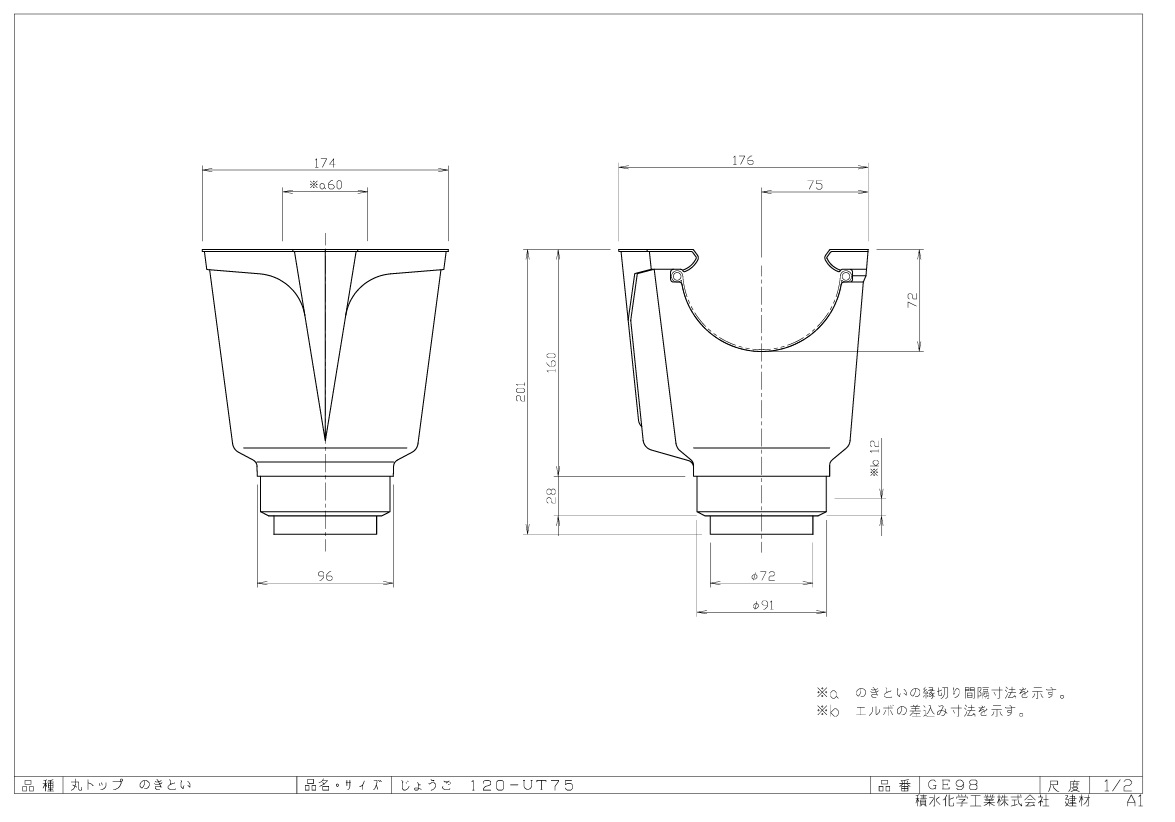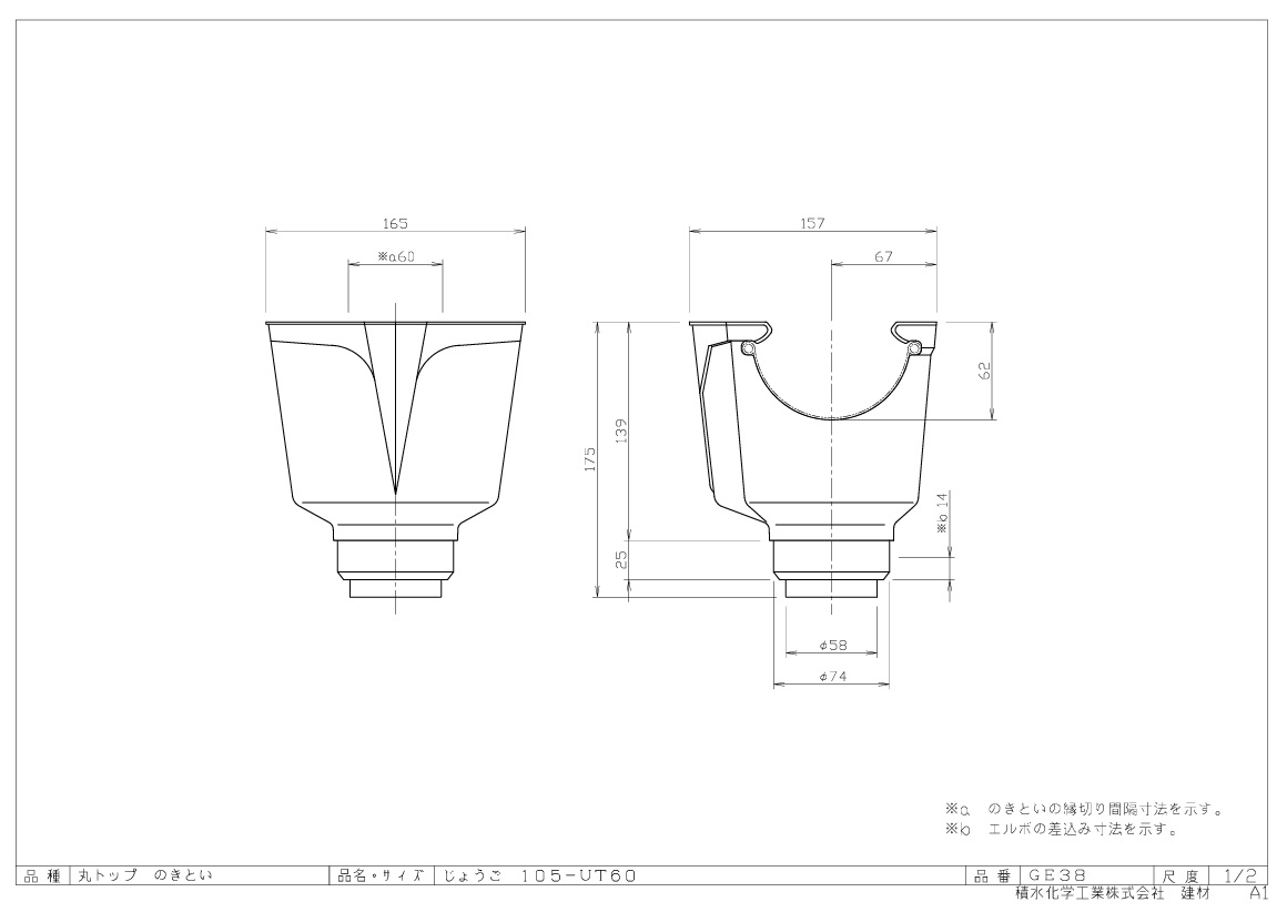 商品名: エスロン丸トップ じょうご 105*UT60・120*UT75 GE38・GE98