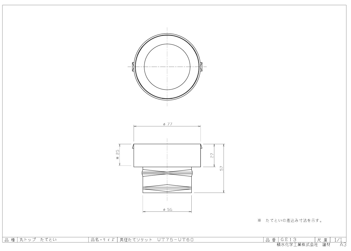 <たてといの異径直継ぎ手です【エスロン丸トップ グレー 異径たてソケット GE08・GE13 >