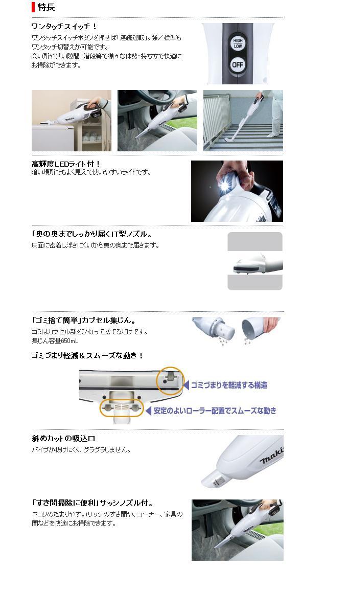 商品名: マキタ 充電式クリーナ CL141FDRFW ・CL141FDZW