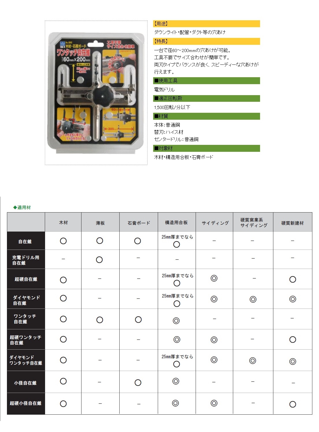 <サイズ合わせ工具不要!構造用合板28mm厚も一発穴あけ可能!【スターエム NO.5010 ワンタッチ自在錐>