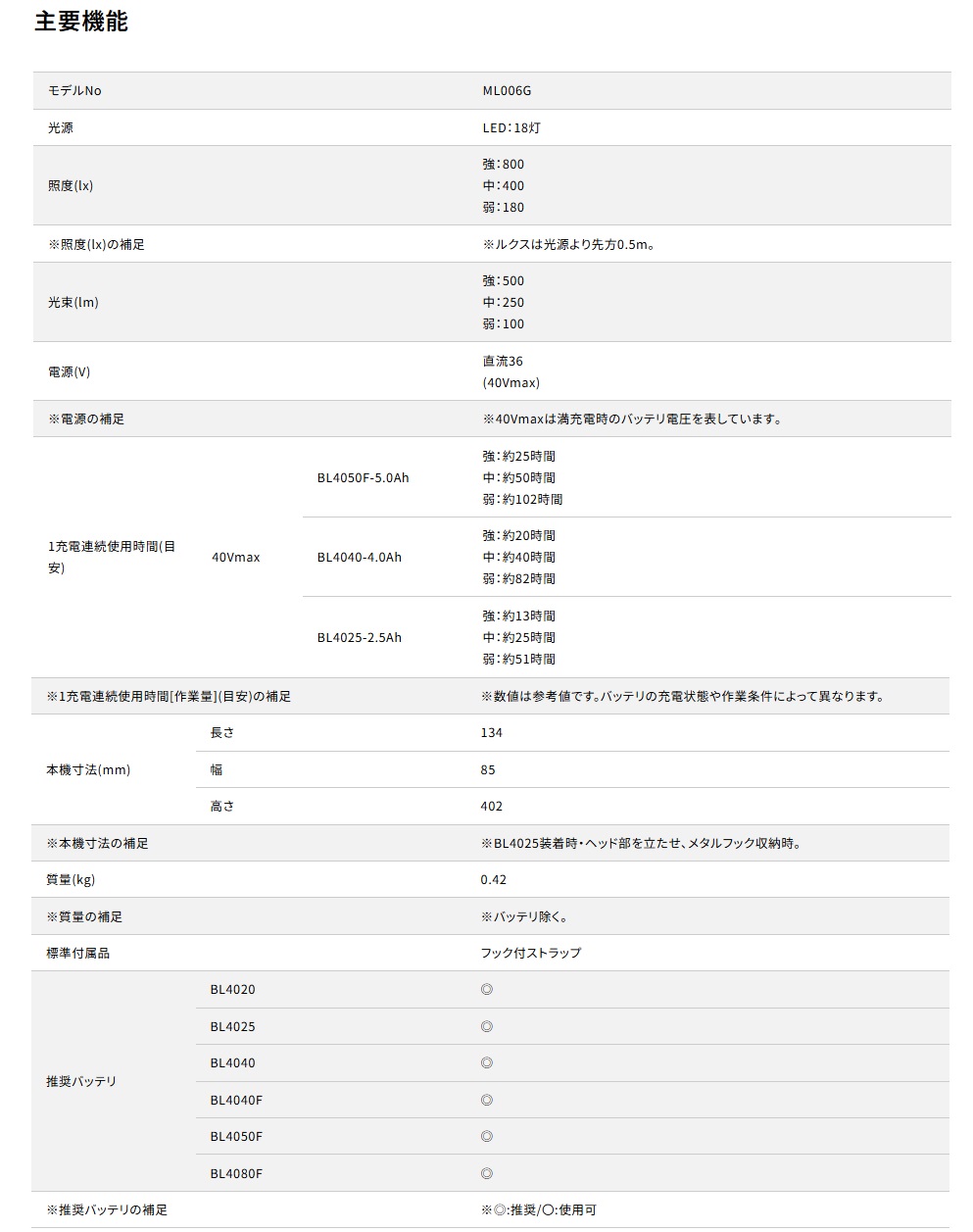 ●現場を明るく照射 最大光束500lm、LED18灯。