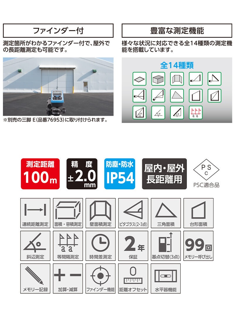 ※(1)有利な条件 0.3~100m…±(2.0+0.1×D[m]) mm( D=測定距離 単位:m) 測定条件 ①弱い光 ②反射率90%の白色ターゲット ③測定時の気温25℃ ④弱い風( 2)不利な条件 0.3~50m…±(3.0+0.3×D[m]) mm( D=測定距離 単位:m) 測定条件「 有利な条件」のいずれかを満たさない場合?