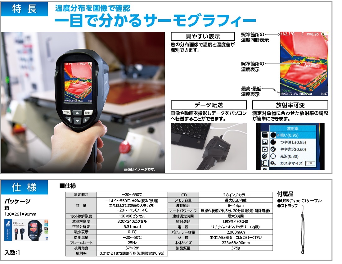 商品名: シンワ サーモグラフィー[A-20~550℃放射率可変タイプ] 73091 4960910730915