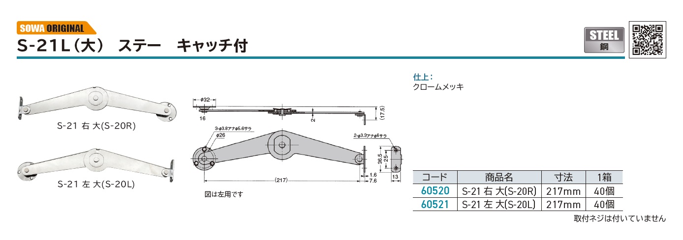 商品名: SOWA 天蓋用ステー S-21L 60520・60521