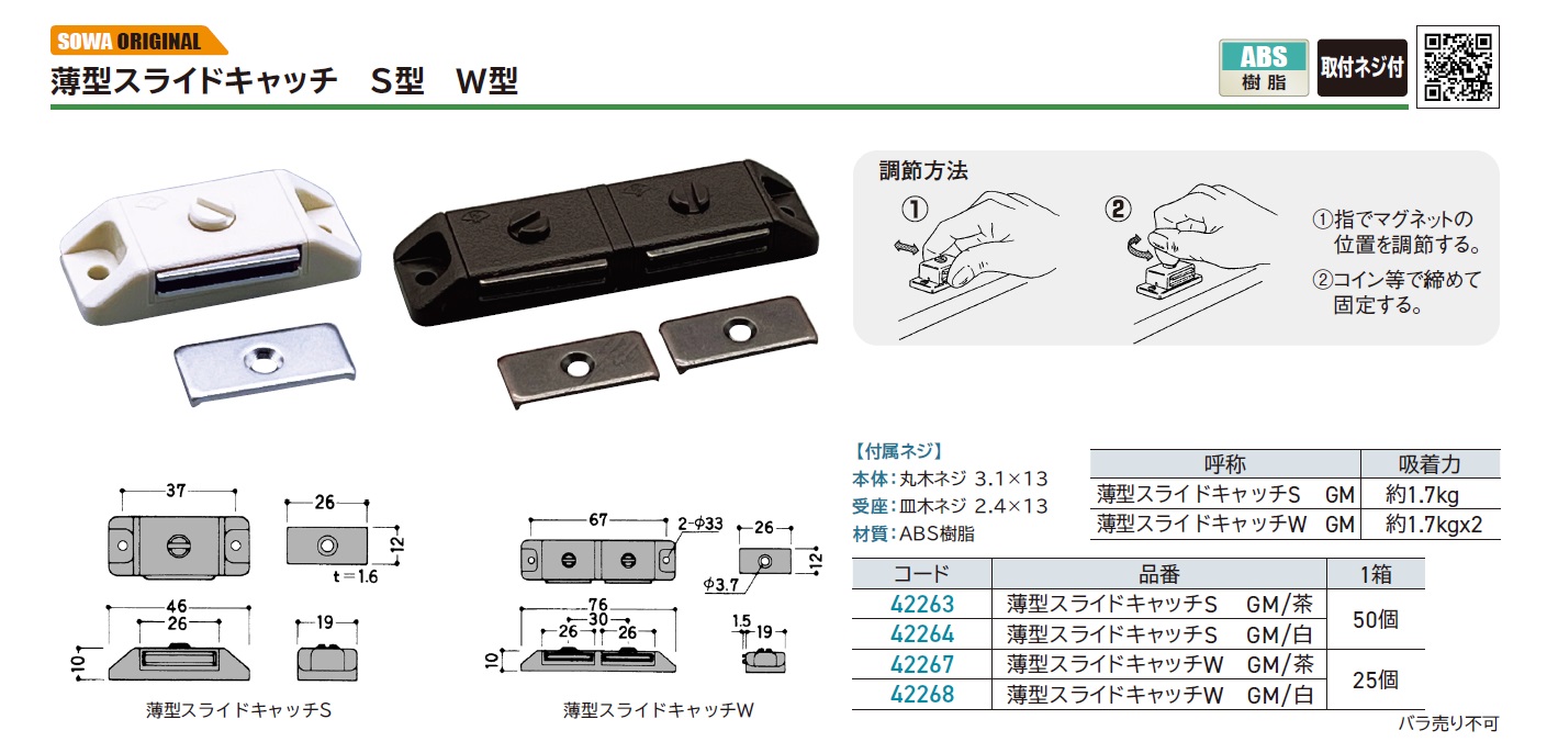 商品名: SOWA 薄型スライドキャッチS型・W型 42263・42264・42267・42268