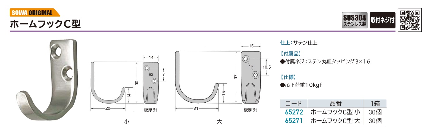 商品名: SOWA ステンレス製ホームフックC型 65272・65271