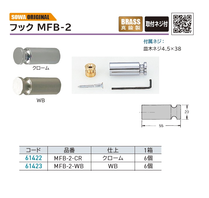 商品名: SOWA 真鍮フック MFB-2 MFB-2-CR・MFB-2-WB・61422・61423