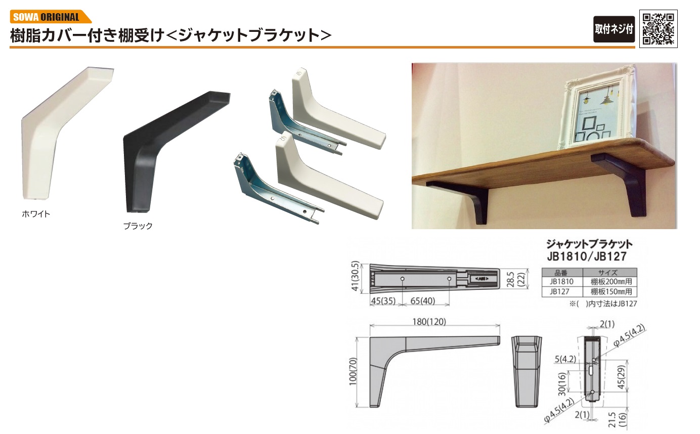 <【SOWA 樹脂カバー付き棚受[ジャケットブラケット] JB1810-WT・JB127-WT・JB1810-BL・JB127-BL 68391・68392・68393・68394・】>