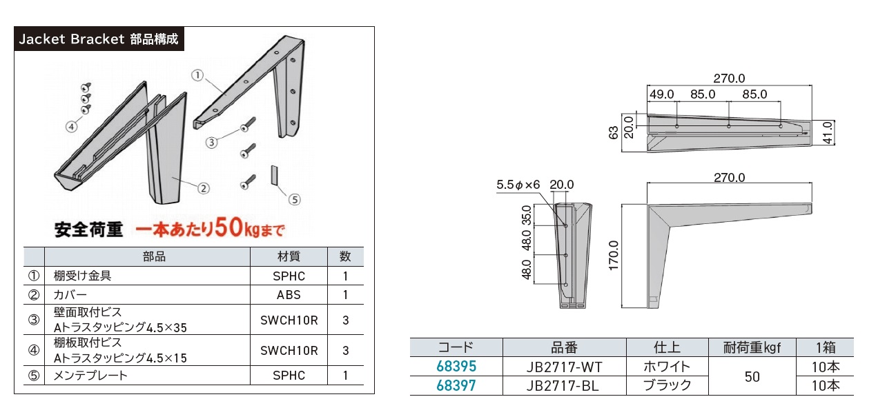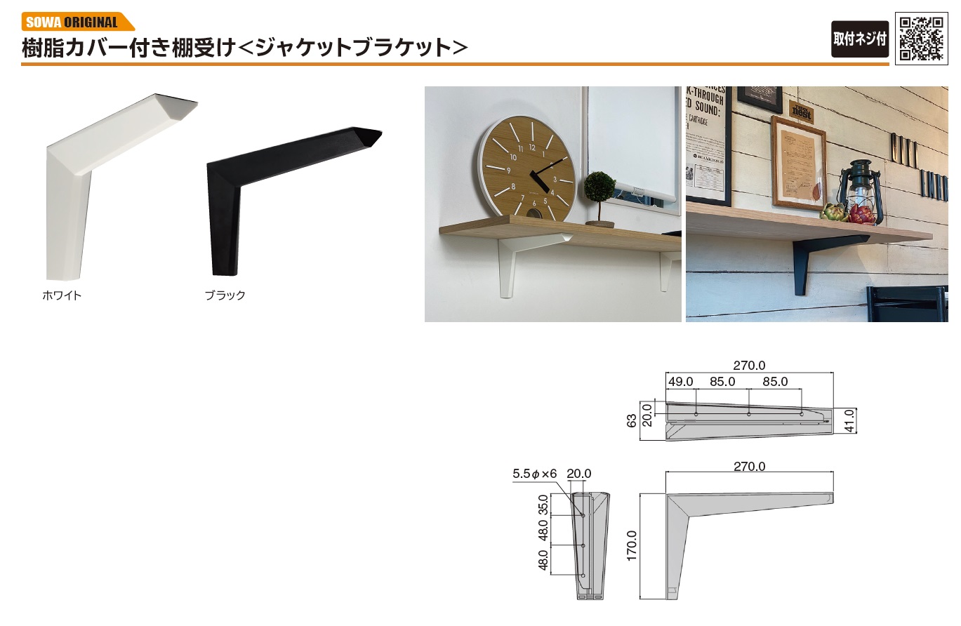 商品名: SOWA 樹脂カバー付き棚受[ジャケットブラケット] JB2717-WT・JB2717-BL・68395・69397