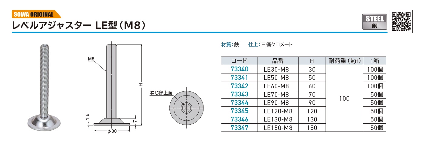 商品名: SOWA レベルアジャスターLE型(M8) LE30-M8・LE50-M8・LE60-M8・LE70-M8・LE90-M8・LE120-M8・LE130-M8・LE150-M8・LE-M8・ 73340・73341・73342・73343・73344・73345・73346・73347・