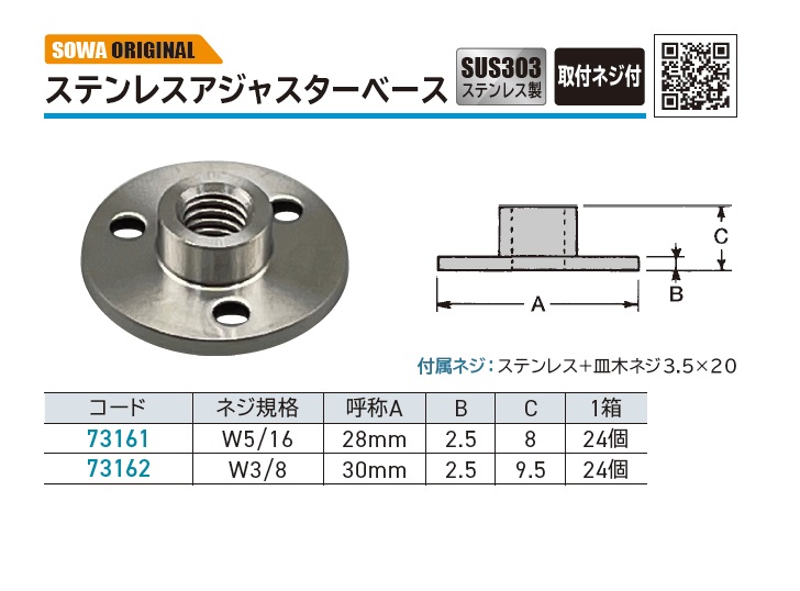 商品名: SOWA ステンレスアジャスターベース 73161・73162