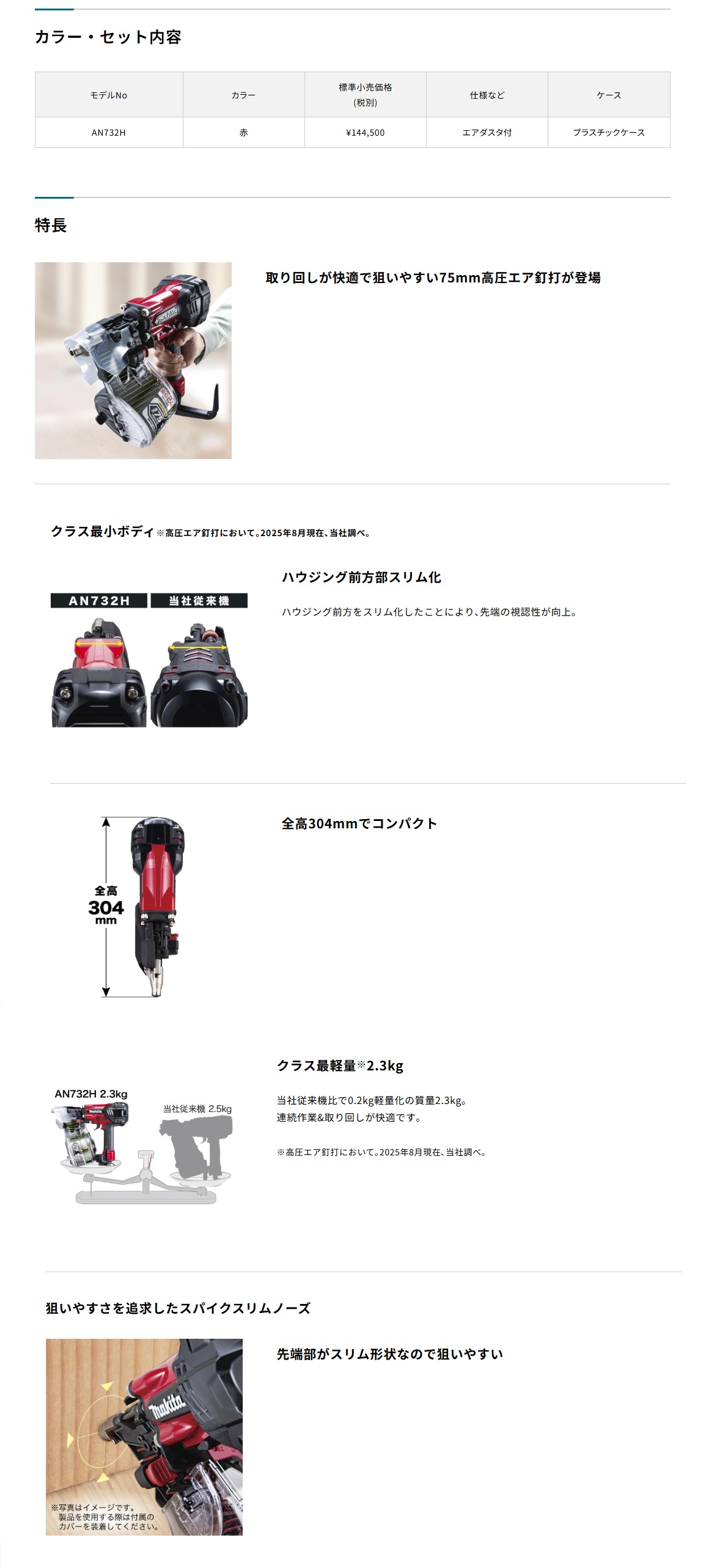 ●クラス最小ボディ※高圧エア釘打において。2025年8月現在、当社調べ。