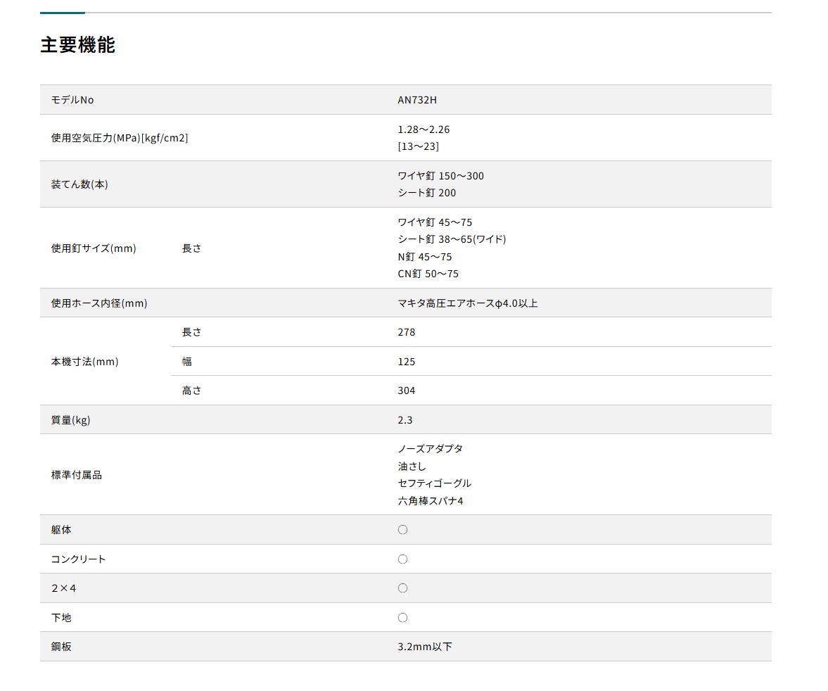 商品名: マキタ 高圧エア釘打機 AN732H