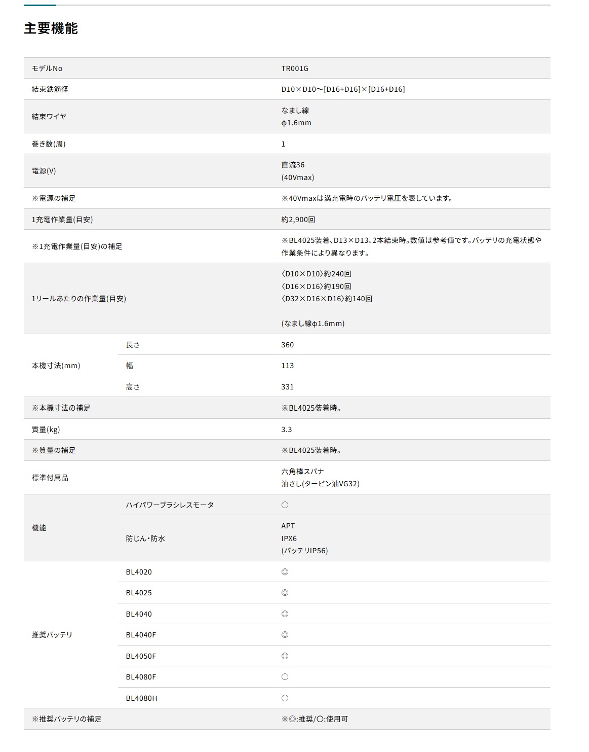 商品名: マキタ 充電式鉄筋結束機 TR001GZK