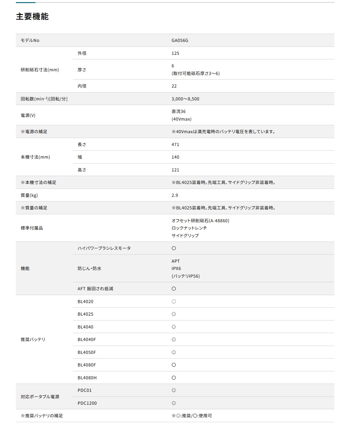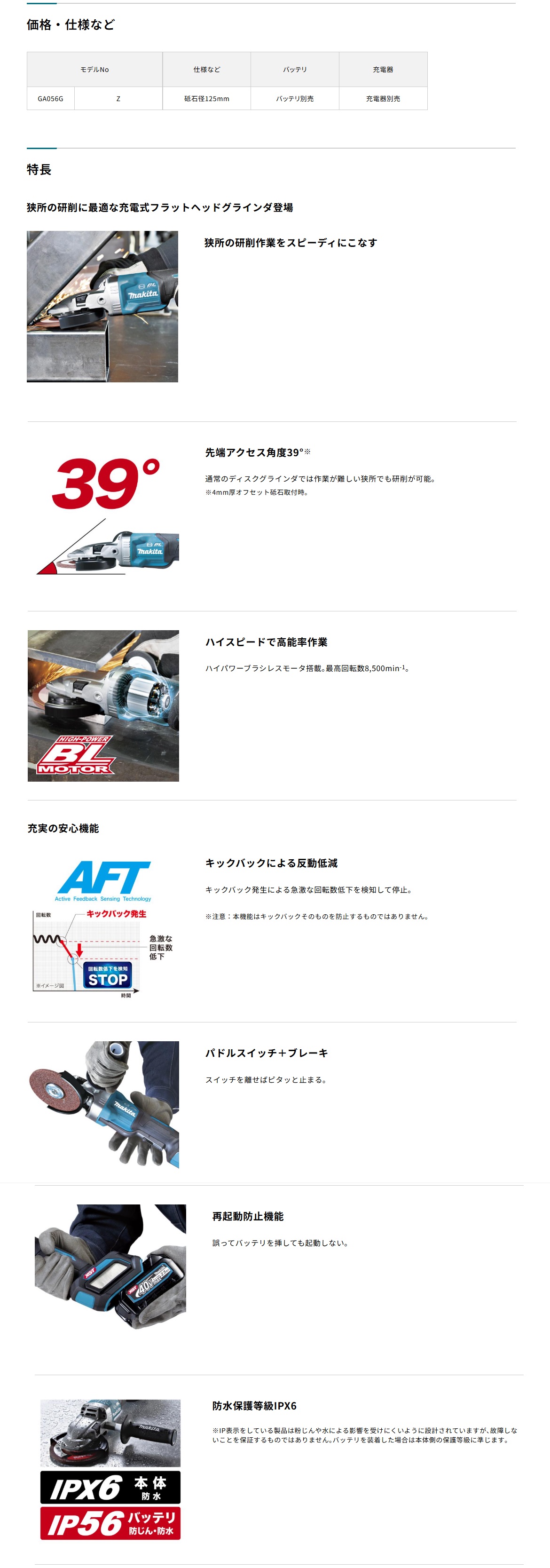 商品名: マキタ 充電式フラットヘッドグラインダ GA056GZ