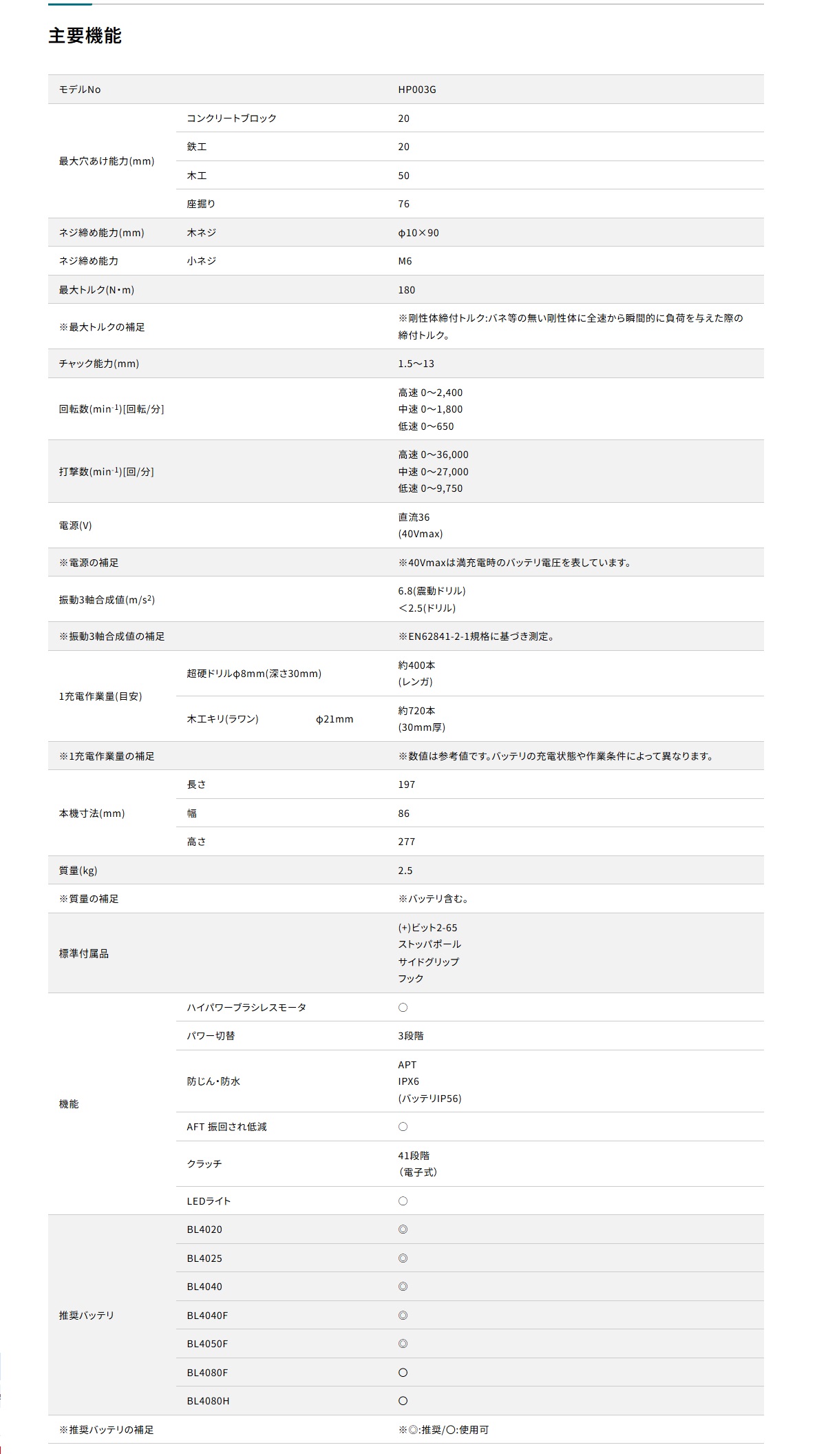 商品名: マキタ 充電式震動ドライバドリル HP003GRDX・HP003GZ