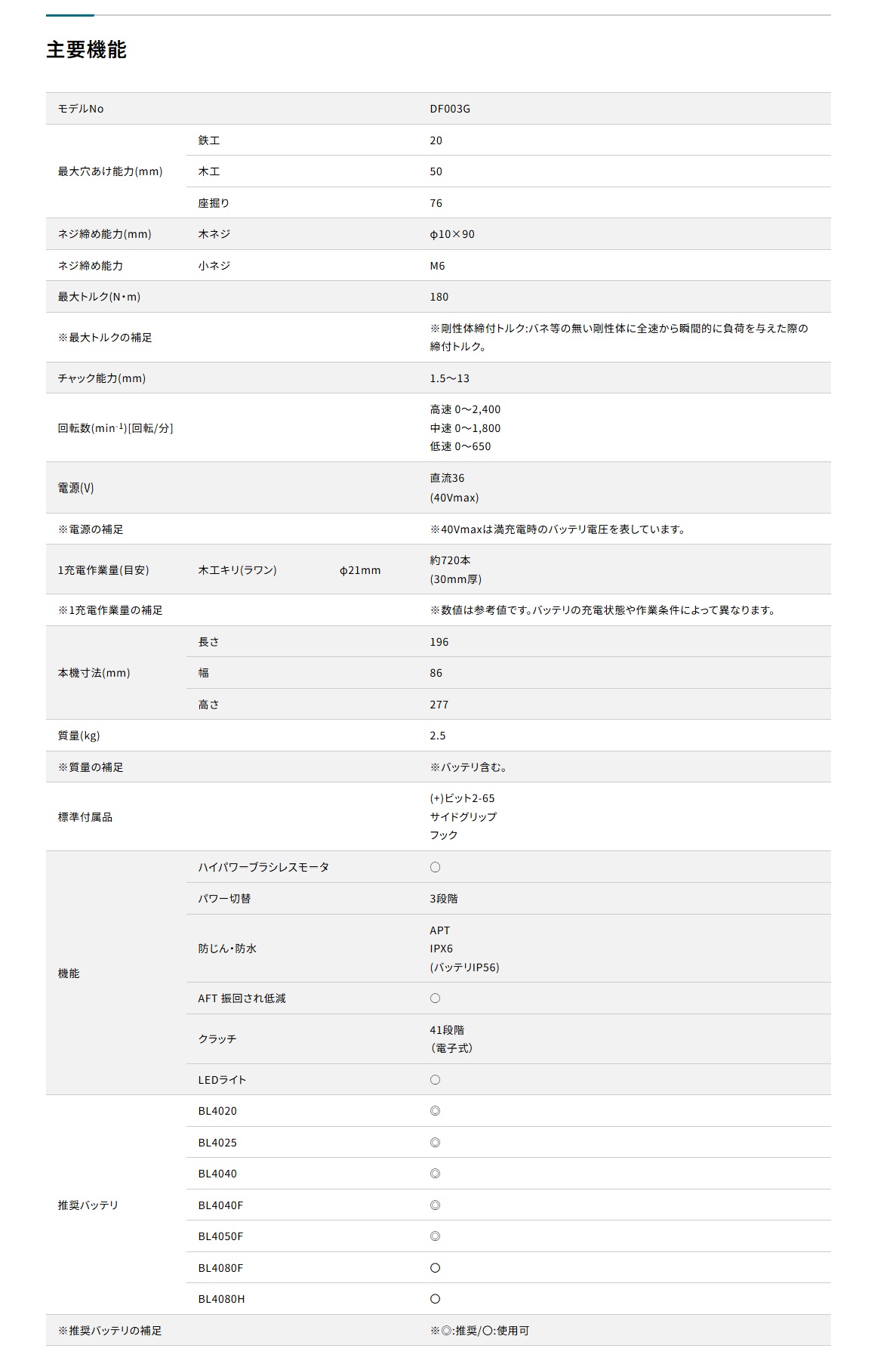 商品名: マキタ 充電式ドライバドリル DF003GRDX・DF003GZ