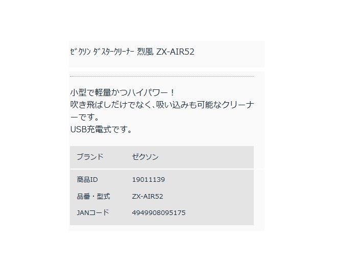商品名: ゼクソン ダスタークリーナー[烈風] ZX-AIR52