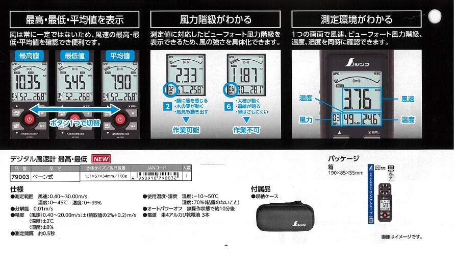 ●風は常に一定ではないため、風速の最高・最低・平均値を確認でき便利です。
