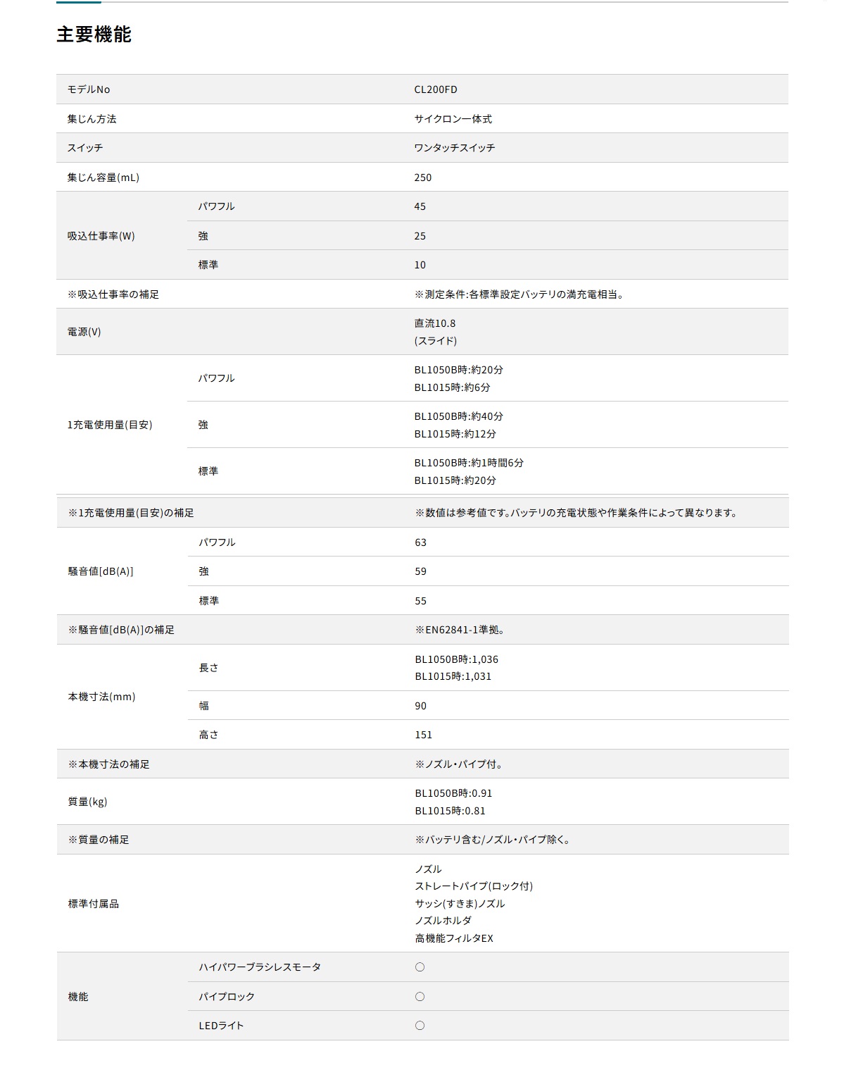 商品名: マキタ 充電式クリーナ CL200FDSTW・CL200FDSHW・CL200FDZW
