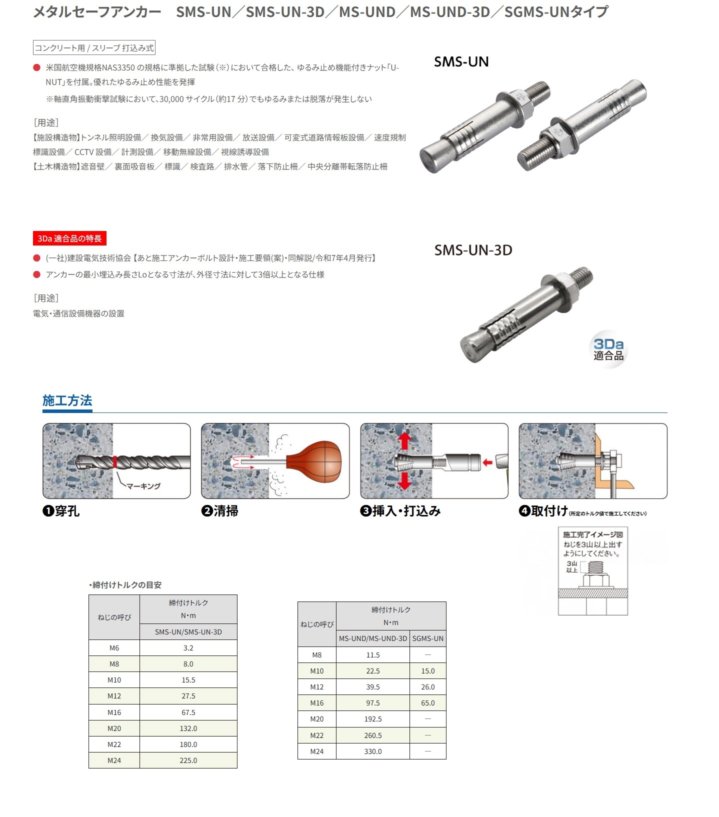 サンコーテクノ スチール製メタルセーフアンカーM24 MS-2420UND[5本入り]