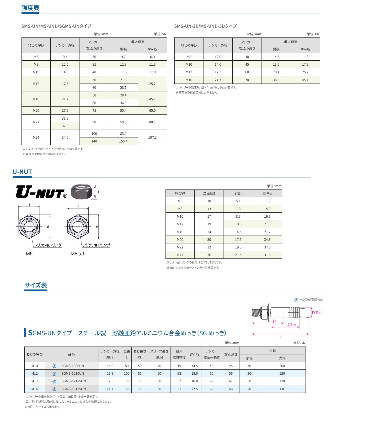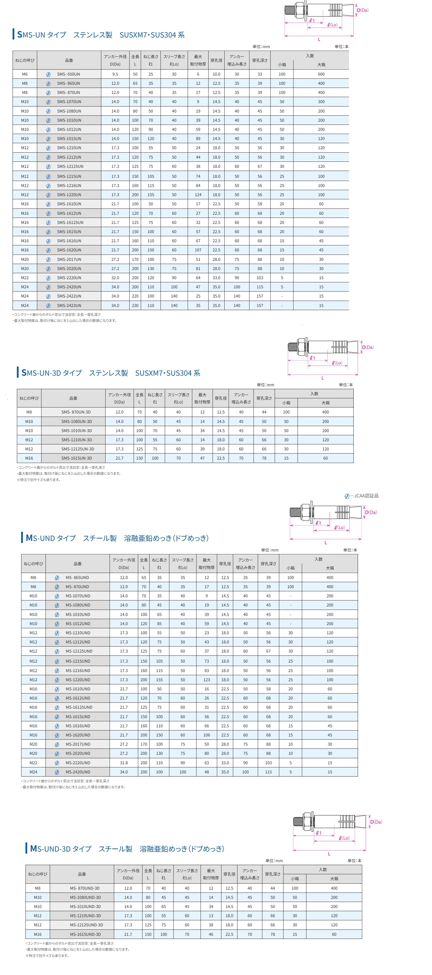 サンコーテクノ ステンレス製メタルセーフアンカーM12 SMS-1216UN[25本入り]