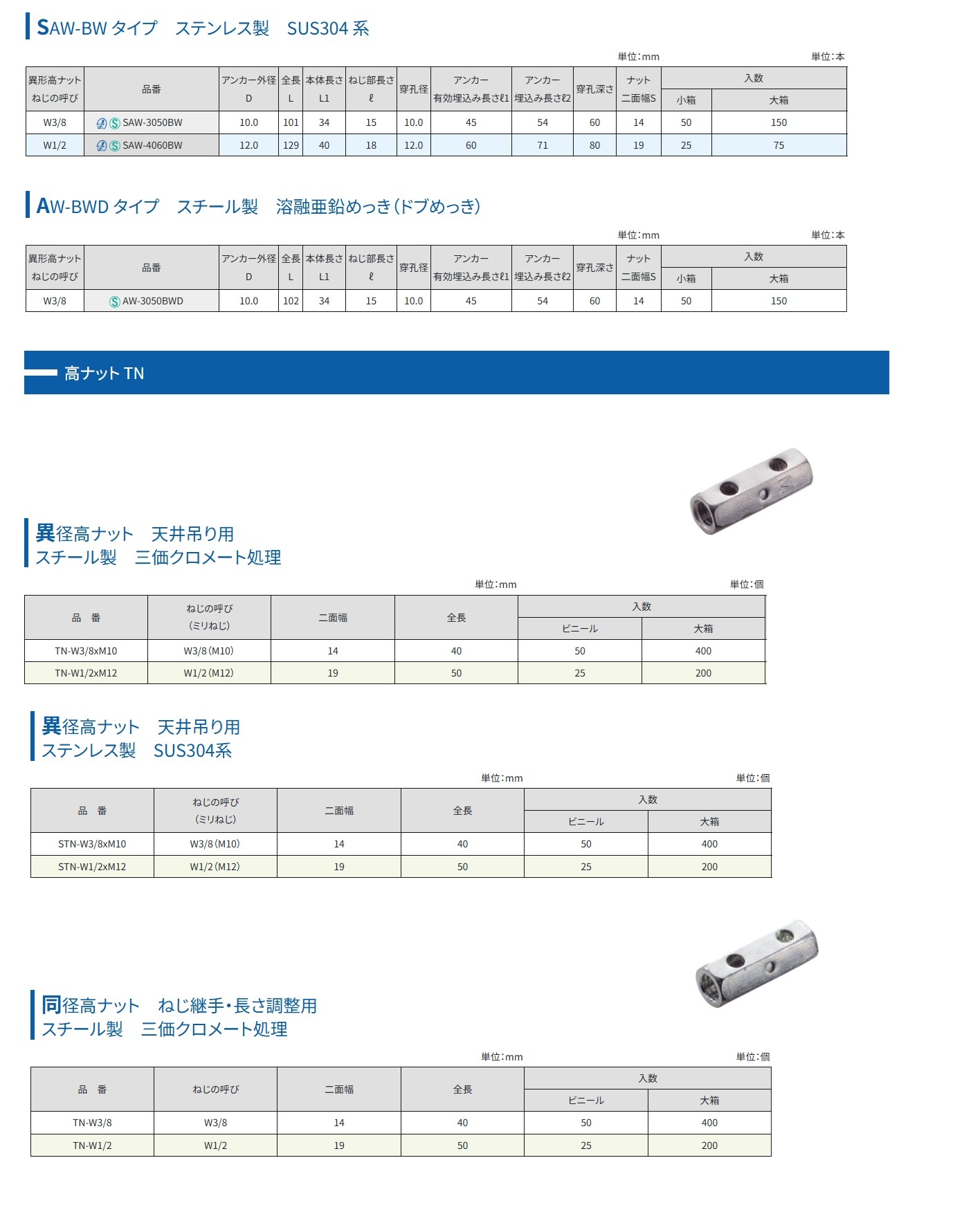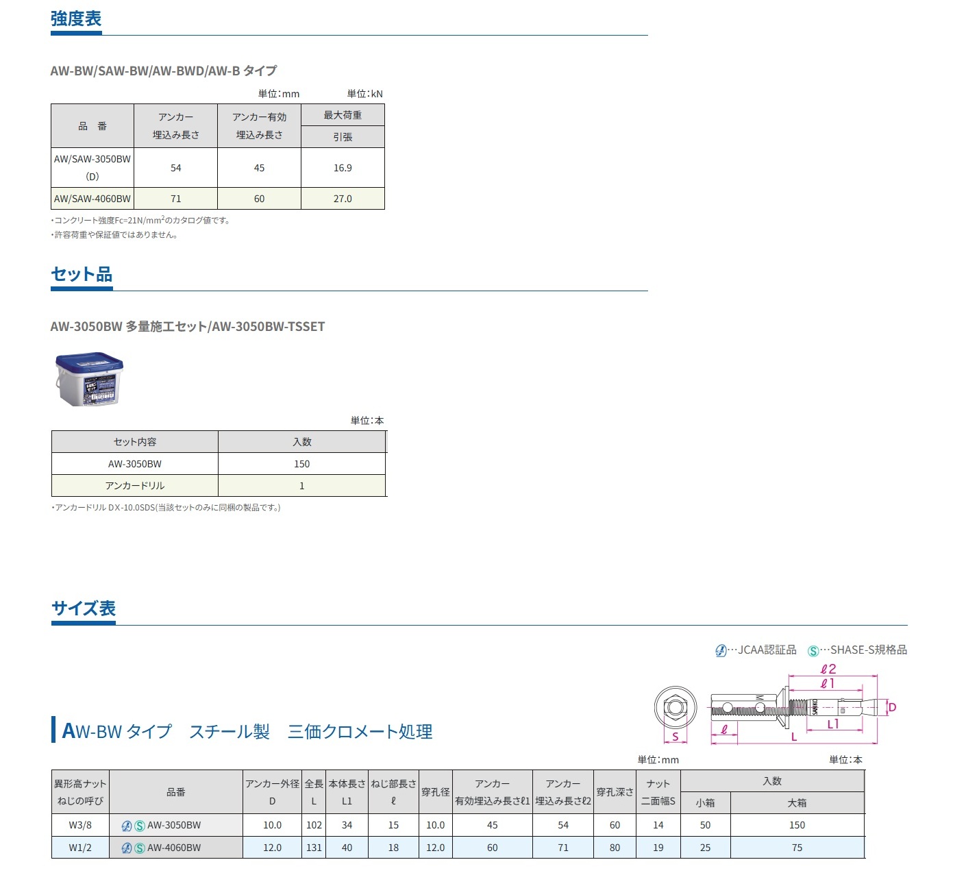 商品名: サンコーテクノ トルコンアンカー AW-BW/SAW-BW/AW-BWDタイプ