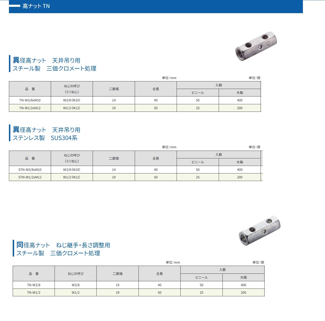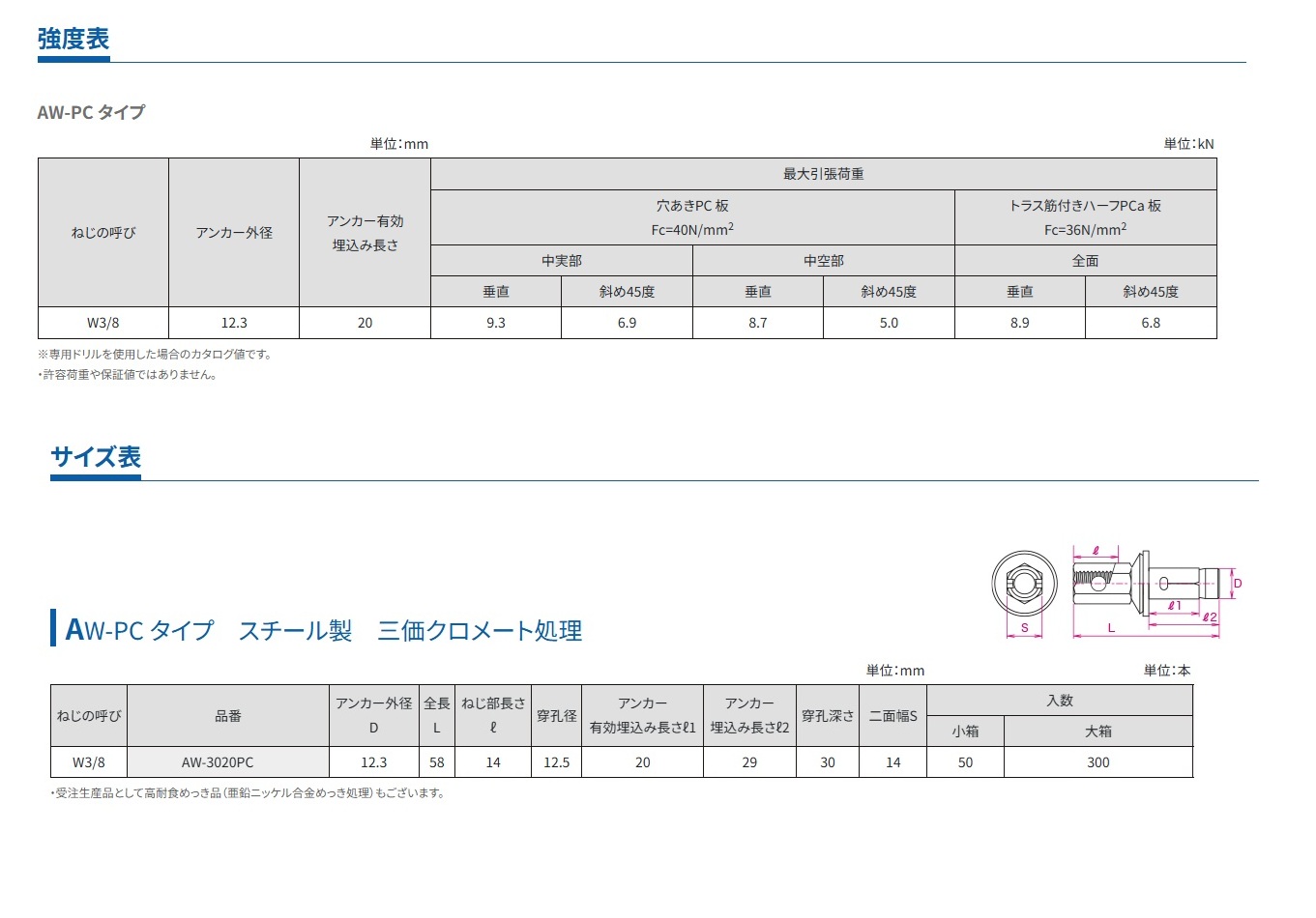 品番: AW-3020PC・TN-W3/8×M10・TN-W1/2/×M12・STN-W3/8/×M10・STN-W1/2/×M12・TN-W3/8・TN-W1/2・TN-W3/8D・