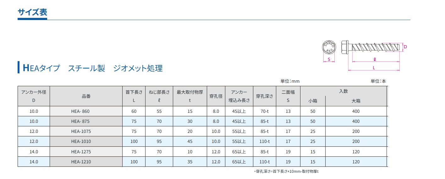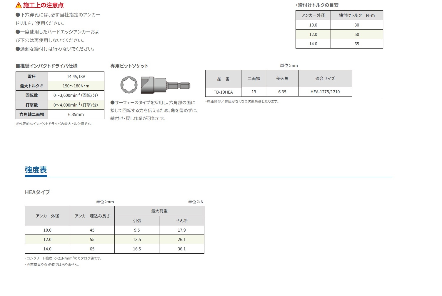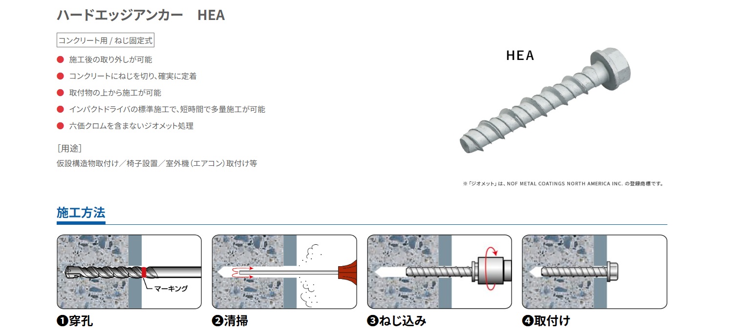 <コンクリート用 / ねじ固定式【サンコーテクノ ハードエッジアンカー HEA】>