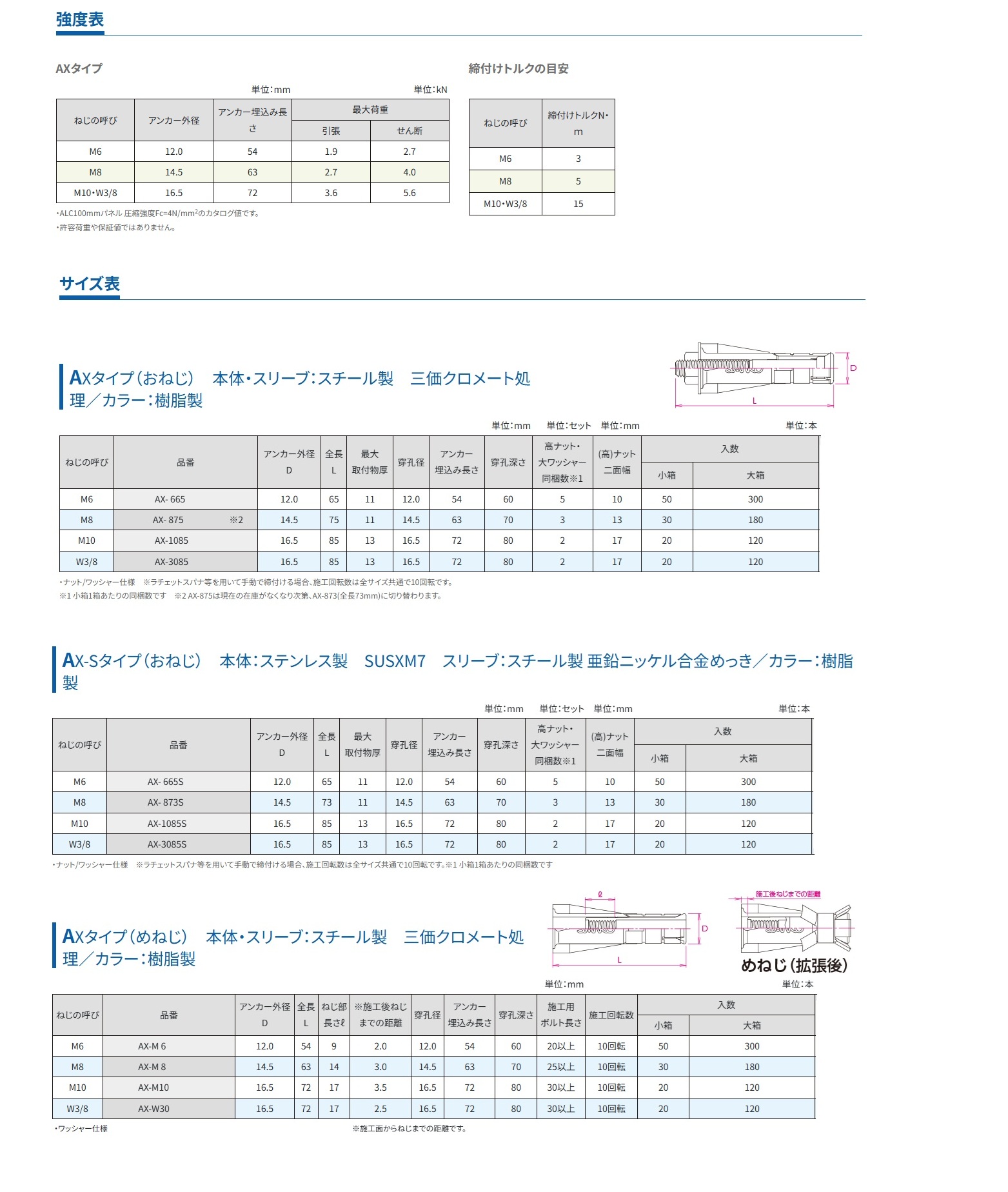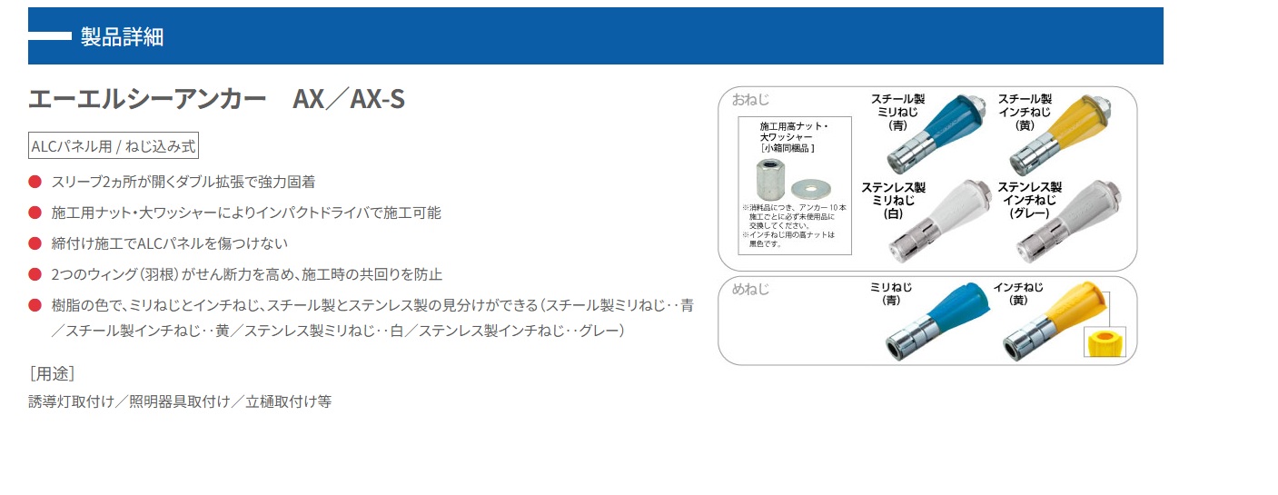 <ALCパネル用 / ねじ込み式【サンコーテクノ エーエルシーアンカー AX/AX-S】>