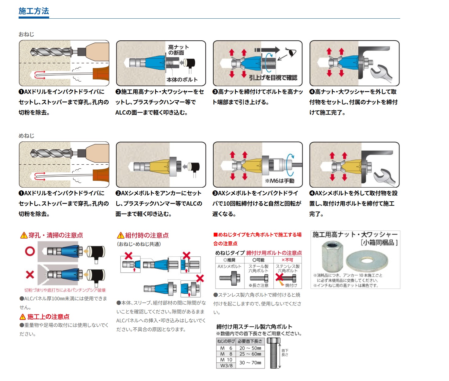 ●施工用ナット・大ワッシャーによりインパクトドライバで施工可能