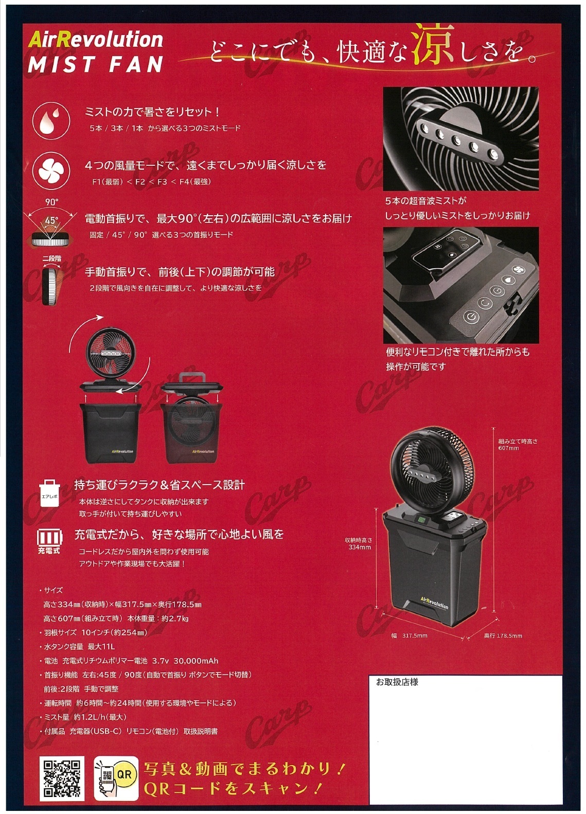 < コンパクトだけど超強力!【KMネクスト AirRevolution MIST FANミストファン×CARPコラボ】>