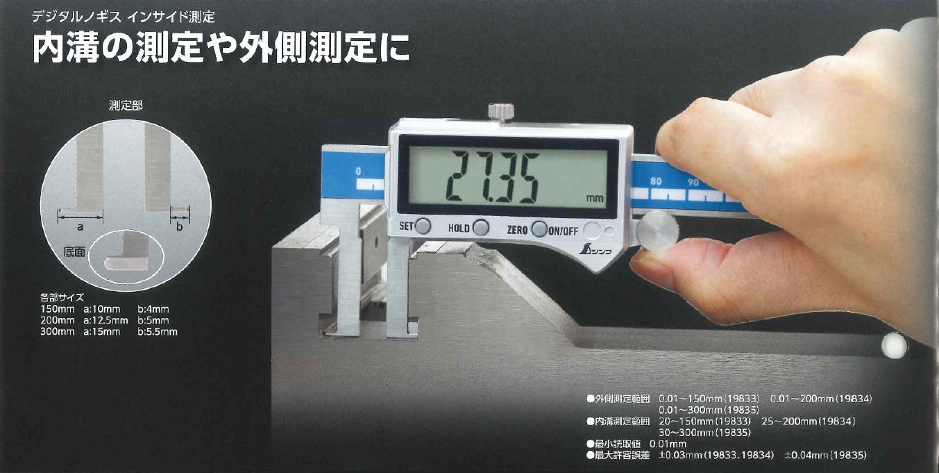 シンワ デジタルノギス[インサイド測定] 19833 19834 19835