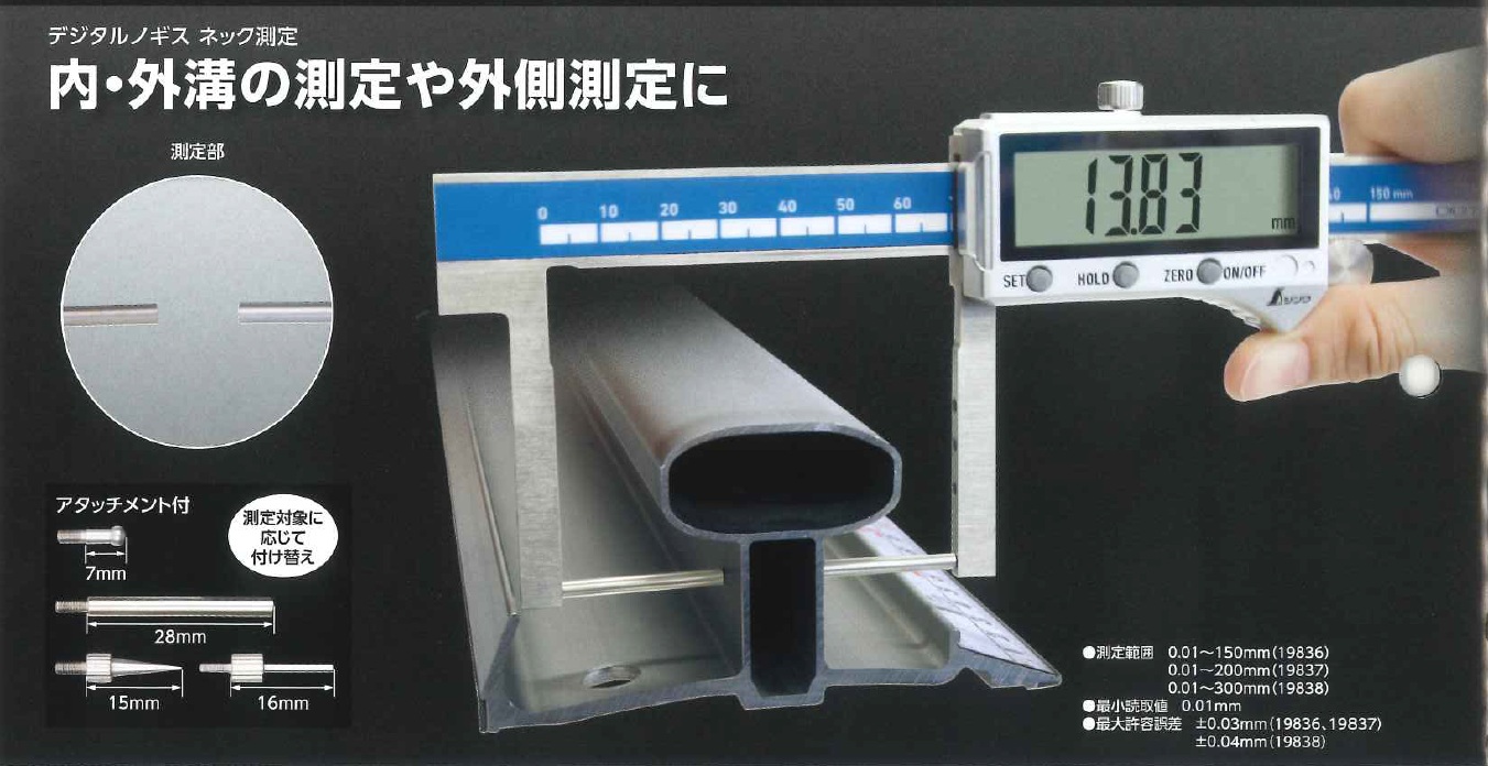 シンワ デジタルノギス[ネック測定] 19836 19837 19838