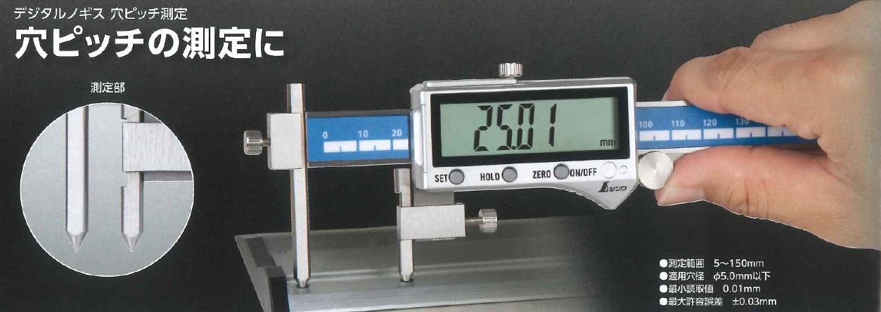 シンワ デジタルノギス[穴ピッチ測定]Φ5.0 150mm防塵防水 19832