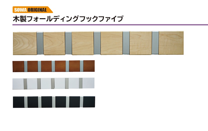SOWA 木製フォールディングフックファイブ 収納フック BN-05N・BB-05N・W-05N・B-05N 61121・61122・61123・61124