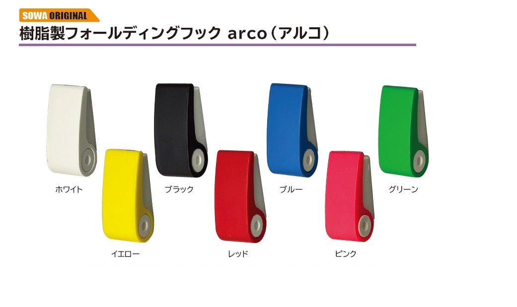 SOWA 樹脂フォールディングフックarco(アルコ) ARWH・ARBL・ARBU・ARGR・ARYE・ARRE・ARPI