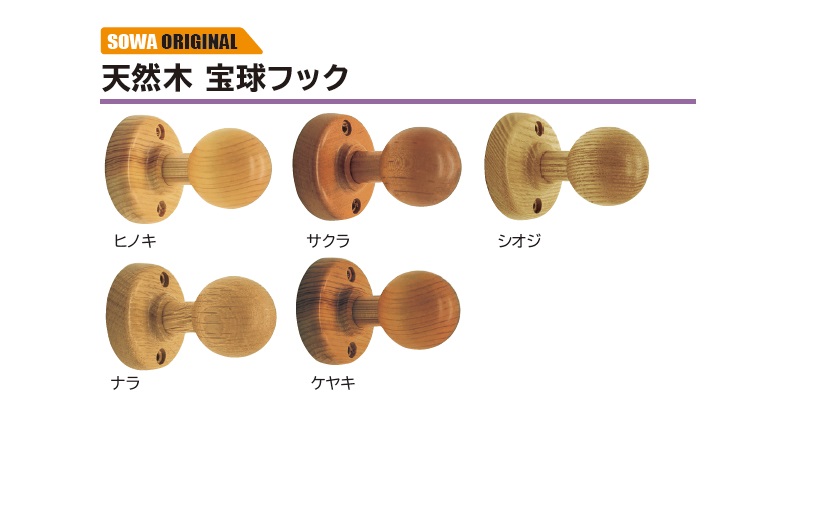 SOWA 天然木 宝球フック 15311・15312・15313・15314・15315・15316・15320・15321・15322・15323・15324・15325・15317・15318・15319