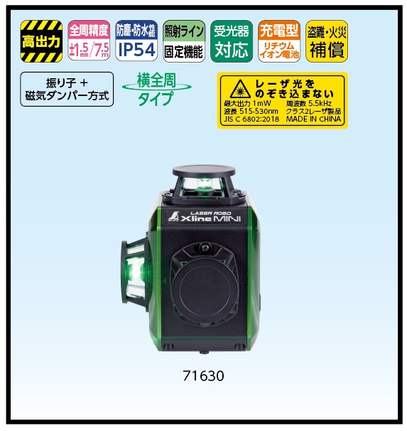 シンワ レーザーロボX Line Miniグリーン[フルライン・地墨クロス] 71630 4960910416308